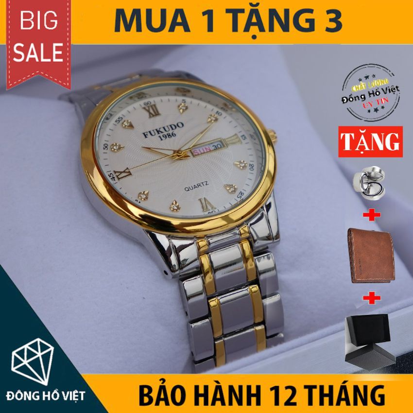 chỉ còn 269,100đ [SIÊU GIẢM GIÁ]Đồng Hồ Nam FUKUDO R86 Mặt Trắng Sang Trọng, Dây Thép Không Gỉ Cao Cấp Chính Hãng