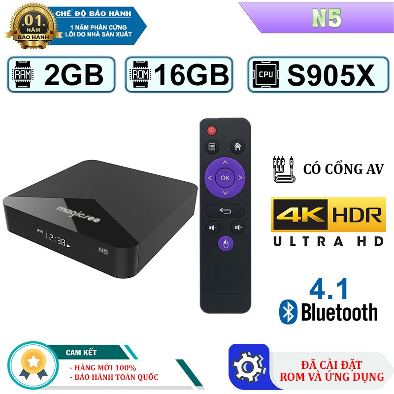Android Tivi Box Magicsee N5-Chip S905X-Ram 2GB-Rom16GB-Xem Truyền Hình FREE - Bảo Hành 1 năm