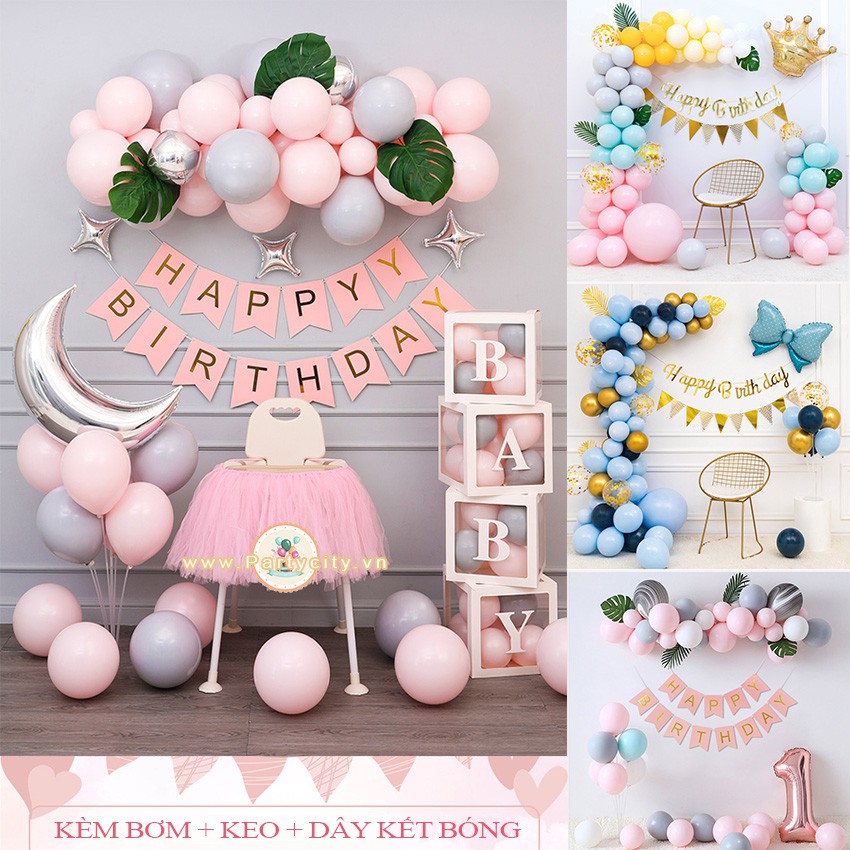 Combo set trang trí sinh nhật, thôi nôi, happy birthday cho bé trai, gái nhiều mẫu đầy đủ phụ kiện TH02
